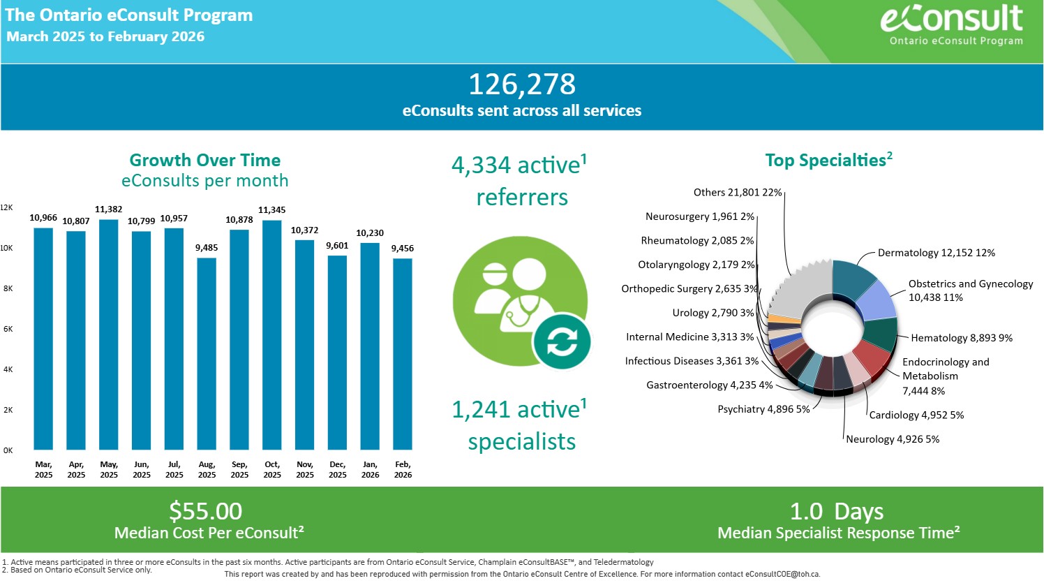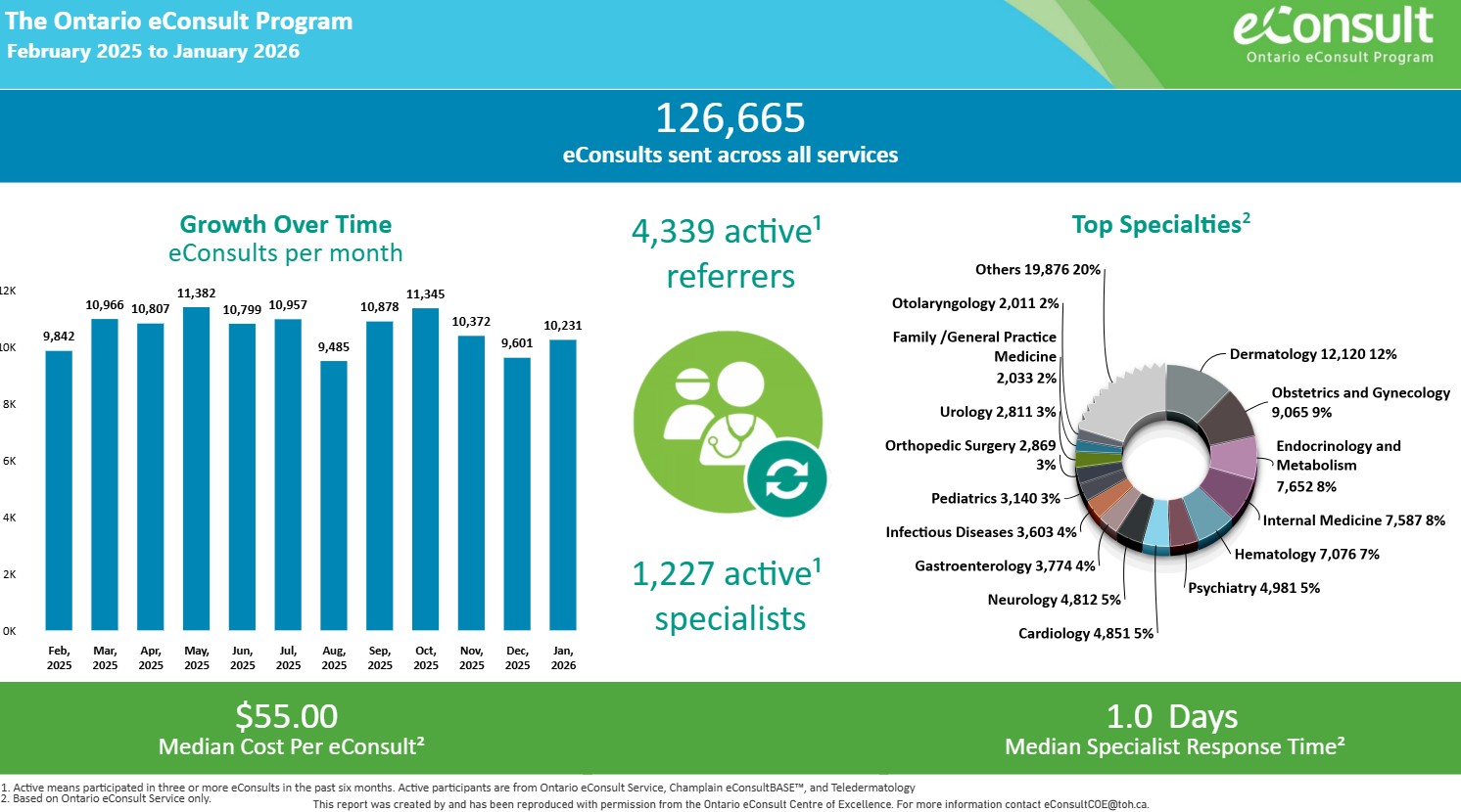Accessed primarily through the secure OTNhub (otnhub.ca), the program is led by the Ontario eConsult Centre of Excellence (eConsult COE), housed at The Ottawa Hospital in partnership with the Bruyère Health Research Institute.
